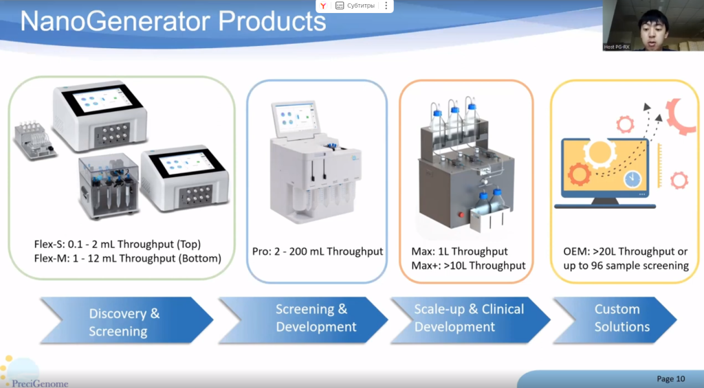 А системы NanoGenerator Max с пропускной способностью 1 л и Max+ с пропускной способностью более 10 л предназначены уже для клинических разработок в соответствии с требованиями GMP.