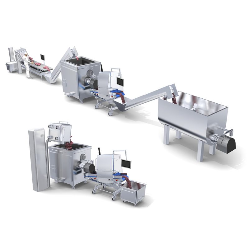 • модульная структура позволяет устанавливать аппарат сразу после мясорубки, включать его в разные по конструкции производственные конвейеры.