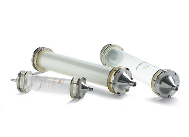 Стеклянные колонки чаще всего находят применение в масштабируемых процедурах флэш-хроматографии с использованием пилотных и полупромышленных установок. Специальное пластиковое покрытие и устойчивость этих колонок к перепадам давления обеспечивают необходимый уровень их безопасности для обслуживающего персонала.
