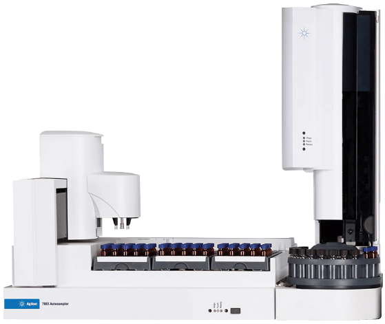 - Анализатор летучих соединений (HS) — для анализа летучих компонентов в сложных матрицах (например, остаточные растворители в лекарствах или ароматы в пище). Проба нагревается, и паровая фаза над ней автоматически вводится в хроматограф, защищая его от нелетучих загрязнений.