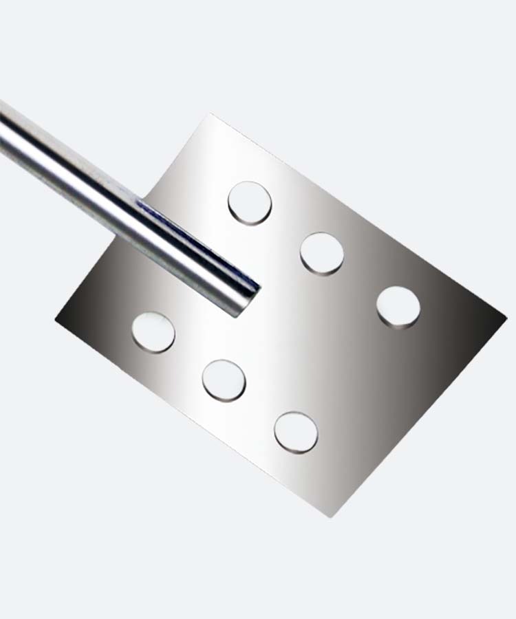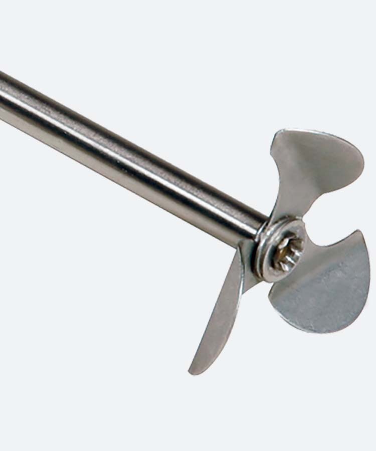 Лопастной перемешивающий элемент, 4 лопасти которого имеют форму пропеллера для оптимального перемешивающего потока. Предназначен для использования с верхнеприводными мешалками Fluko.
