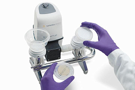 Двухсекционная система Microsart Combi.jet применяется для анализа различных растворов с целью оценки их стерильности или микробиологической зараженности при помощи мембранной фильтрации.