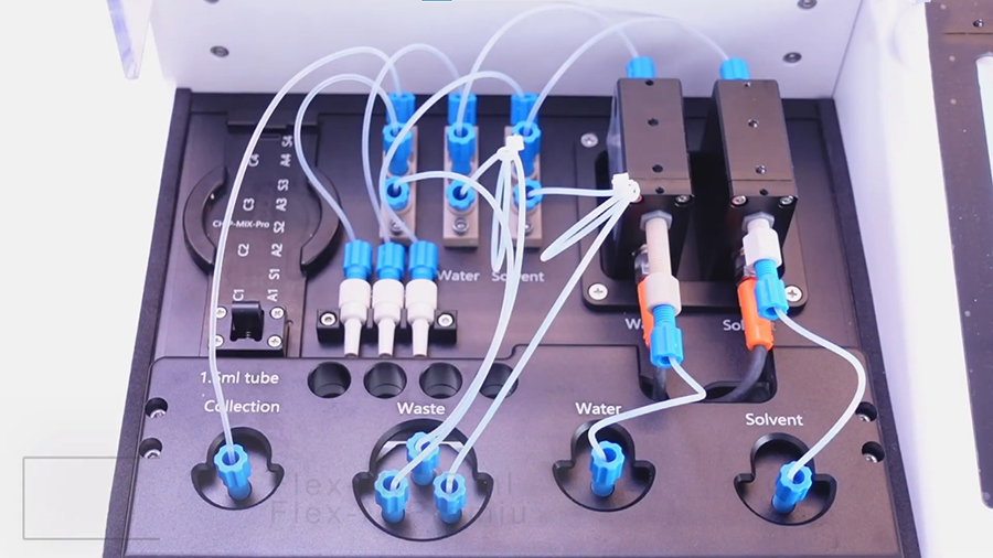 NanoGenerator Flex M Premium — это интегрированная система синтеза наночастиц, имеющая более мощные модули контроля давления, что позволяет обеспечить пропускную способность от 2 до 200 мл за цикл. Общий диапазон скорости потока регулируется в диапазоне от 4 до 20 мл/мин (при использовании чипа CHIP-MIX-PRO), а соотношение фаз (W:O) от 1:1 до 1:10.