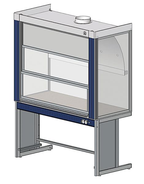 Шкаф вытяжной общего назначения, ширина 150 см, глубина 70 см, корпус – металл, столешница – монолитный пластик Trespa, 2 подъемных экрана, ЛОиП