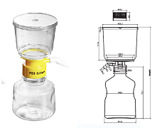 Комплект поставки: фильтр-воронка, встроенный фильтродержатель с мембраной, встроенный боковой вакуумный коннектор и приемная бутыль с крышкой.