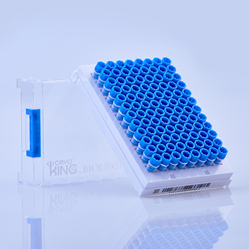 Криопробирки 1 мл, SBS формат, желтые крышки, ПП, штрих-код на дне пробирок, штрих-код на дне штативов, конические, с юбкой, стерильные, бесцветные, 96 шт./штат., 10 штат./уп., 2 уп./кор., Biologix, Китай