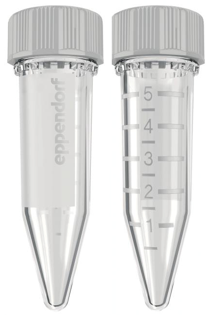 Пробирки 5 мл, типа Эппендорф, до 25 000g, с закручивающейся крышкой, PCR clean, бесцветные, 100 шт./пакет, 200 шт./уп., Eppendorf