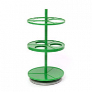 Предназначен для установки и хранения цилиндрических делительных воронок. Устойчивость штатива обеспечивает массивное стальное основание; конструкция предусматривает возможность изменения высоты расположения верхних дисков.