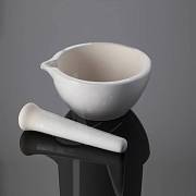 Ступка и пест фарфоровые применяются в лабораториях для тонкого измельчения небольших количеств твердых веществ и тщательного перемешивания нескольких веществ.