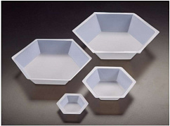Тарелочки для взвешивания порошков, сыпучих и жидких веществ. Могут сгибаться, образуя желобок для легкого переноса взвешиваемого материала в емкость. Изготовлены из биоинертного химически чистого материала, резистентного к спиртам, щелочам, кислотам и другим разбавленным растворам.