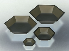 Тарелочки для взвешивания порошков, сыпучих и жидких веществ. Могут сгибаться, образуя желобок для легкого переноса взвешиваемого материала в емкость. Изготовлены из биоинертного химически чистого материала, резистентного к спиртам, щелочам, кислотам и другим разбавленным растворам.