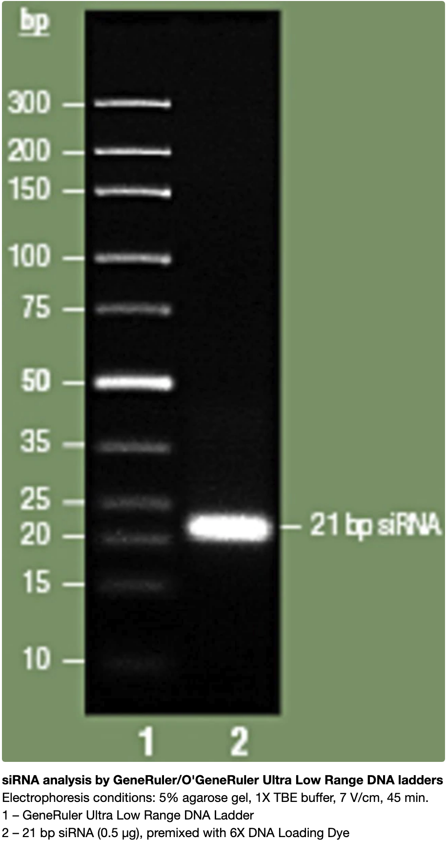 Маркер молекулярного веса ДНК GeneRuler Ultra Low Range содержит 14 фрагментов от 10 до 300 п.н.; фрагменты: 10, 15, 20, 25, 35, 50, 75, 100, 150, 200, 300 п.н.; имеет эталонные полосы (повышенной концентрации) при 50 п.н., что облегчает идентификацию в геле; предварительно смешан с буфером для нанесения; рекомендуемый объём для нанесения на гель — 1 мкл; условия хранения: - при комнатной температуре или при 4 ° С до 6 месяцев, более длительное хранение при -20 °C.