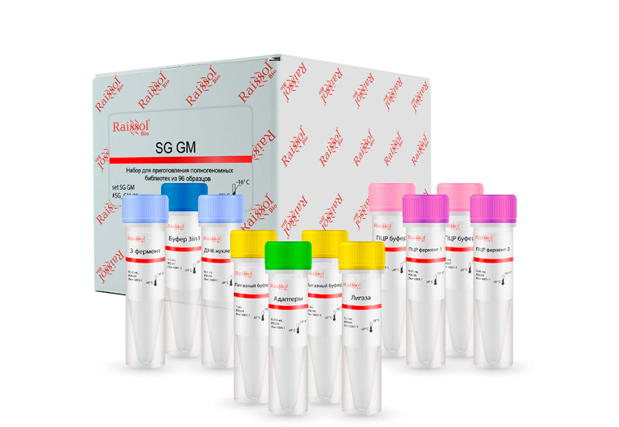 Набор реагентов SG GM предназначен для ферментативной подготовки полногеномных секвенирующих библиотек по технологии Shotgun Sequencing. Данный метод подразумевает исследование генома за счет его случайной фрагментации ферментом — с последующим секвенированием полученных коротких фрагментов и их сборкой in silico. Использование ферментативного подхода позволяет точно контролировать размер получаемых фрагментов (от 130 п.н.) путем регулирования времени реакции, что обеспечивает высокую воспроизводимость результатов. Набор демонстрирует универсальность, работая как с геномной ДНК, так и с длинными ампликонами (свыше 800 п.н.), что делает его идеальным инструментом для решения задач de novo секвенирования, метагеномного анализа и полнотранскриптомного секвенирования (RNA-Seq).