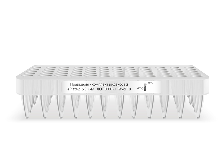 Праймеры для индексирования: комплекты уникальных праймеров (#Plate1_SG_GM и #Plate2_SG_GM), необходимые для введения индексов и последующего объединения (мультиплексирования) образцов в одном потоке секвенирования на платформах Illumina.