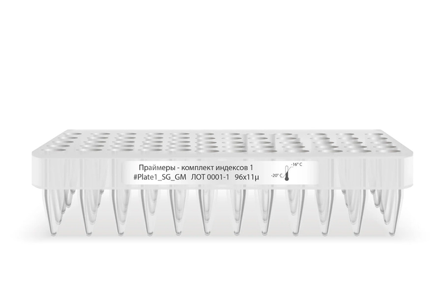 Планшет содержит готовые к использованию праймеры для создания высокопроизводительных мультиплексированных библиотек, совместимых с платформой Illumina. Индексные последовательности встраиваются в ампликоны непосредственно в процессе ПЦР-амплификации. Данный комплект (первый из двух доступных) включает 96 предварительно смешанных уникальных комбинаций праймеров с индексами i5 и i7, расфасованных в индивидуальную 96-луночную планшету. Формат поставки рассчитан на проведение 5 реакций для каждого индекса.