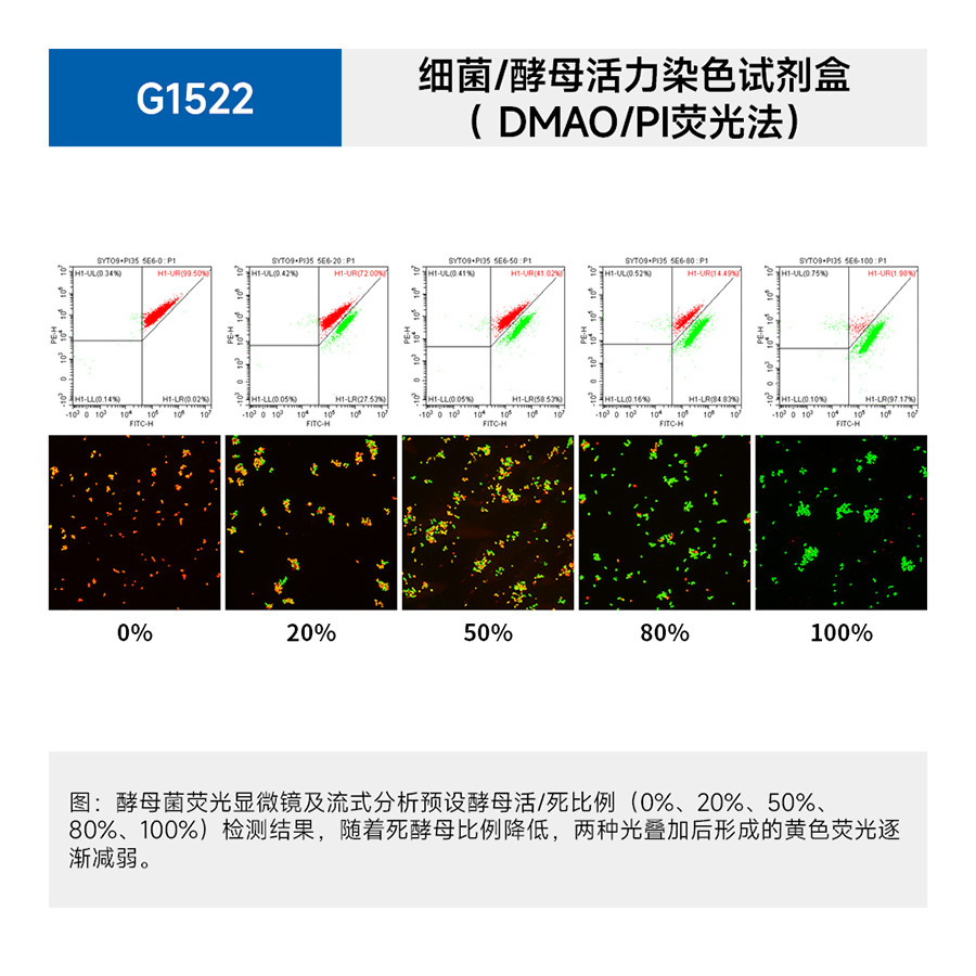 Набор применяется для оценки состояния живых и мертвых бактерий методом окрашивания нуклеиновых кислот зеленым красителем DMAO и красным флуоресцентным красителем пропидий йодидом (PI). Набор совместим с такими флуоресцентными методами как определение на микропланшетных ридерах, цитометрах и микроскопах с флуоресцентным методом анализа. Подходит для работы с многими грамотрицательным и грамположительным бактериям, в том числе E.coli, Bacillus subtilis, micrococcus lysoides и т.п. Данный набор применим для оценки жизнеспособности дрожжей.