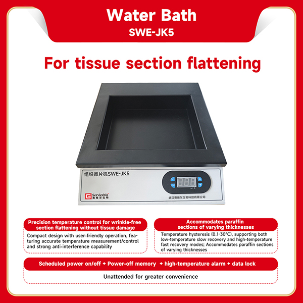 Водяная баня Servicebio используется для точного выравнивания гистологических срезов тканей без повреждений. Технические характеристики бани
