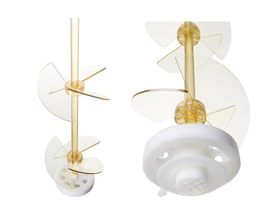 • конструкция с двумя импеллерами обеспечивает равномерное и эффективное перемешивание при различных объемах;